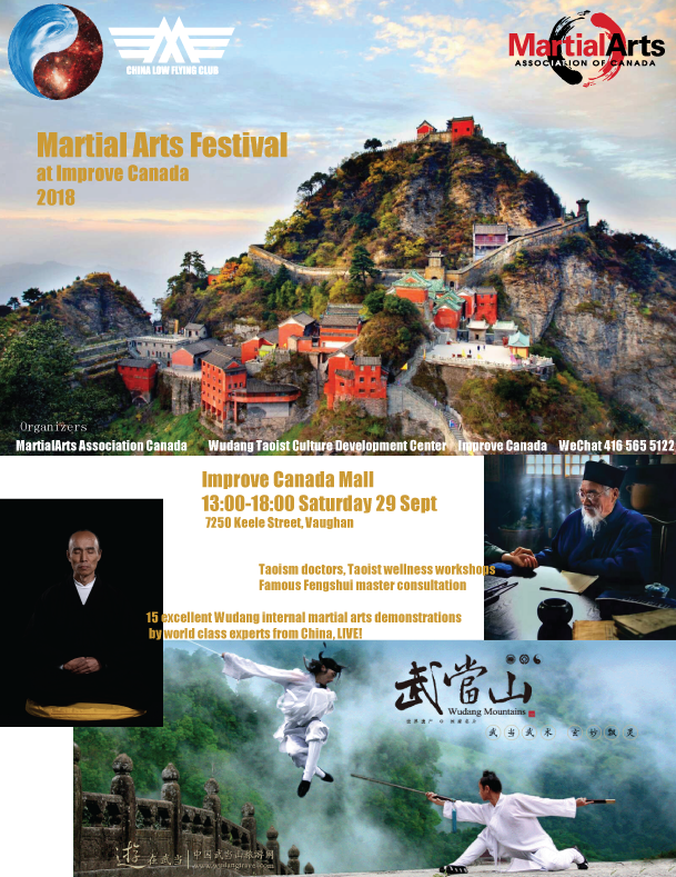 As the organizers, MartialArts Association, Wudang Daoist Culture Development Centre, Wudang Daoist Culture Development Centre Of Canada, we welcome you and family to our wonderful event on 29 Sept 2018. If you want to participate or to be a sponsor, please contact us at 416 565 5122.